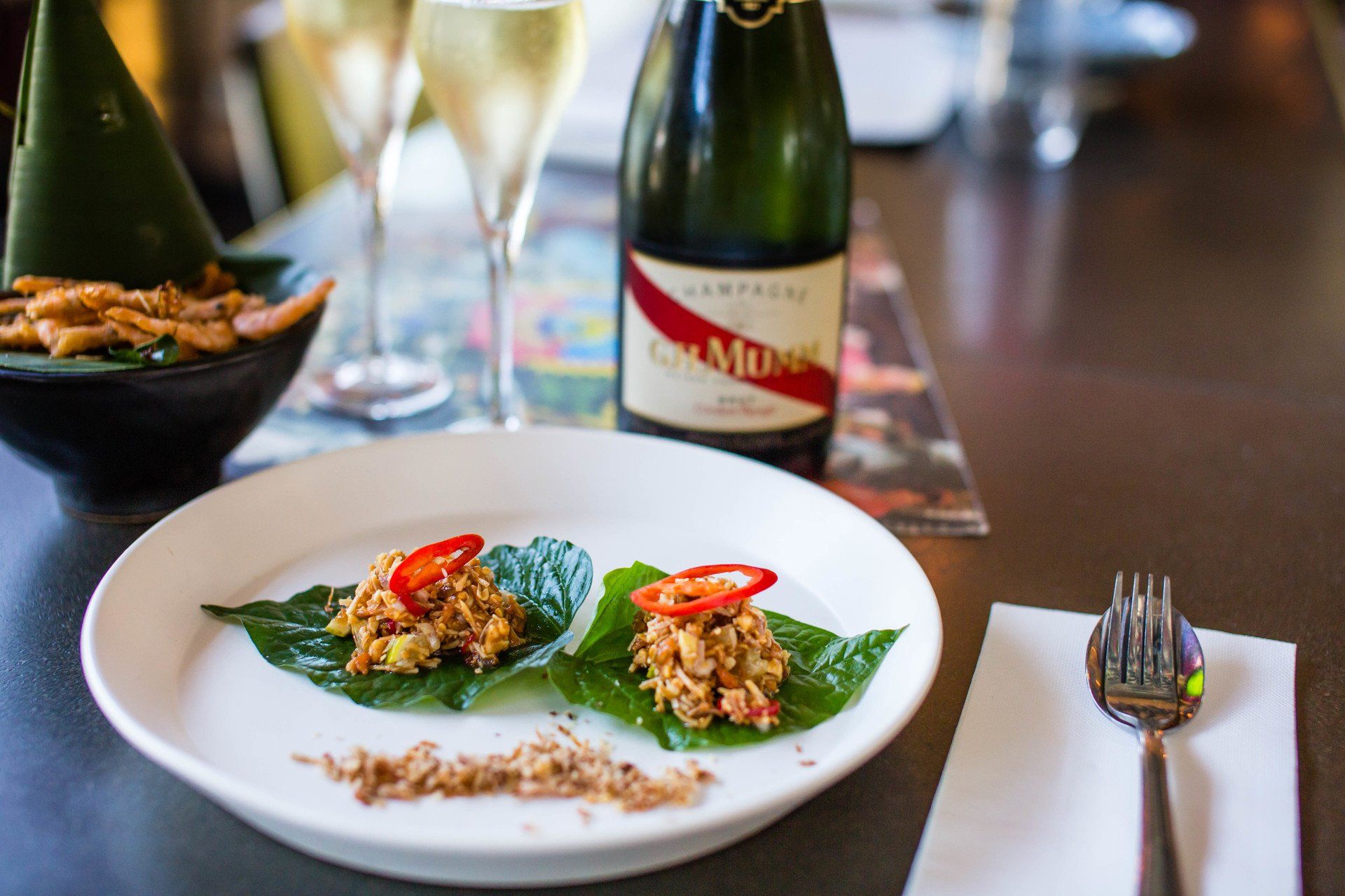 Perfectly seasoned “Darling Downs” Wagyu beef, is grilled tenderly and served up Thai style with fragrant lemongrass and betel leaf.